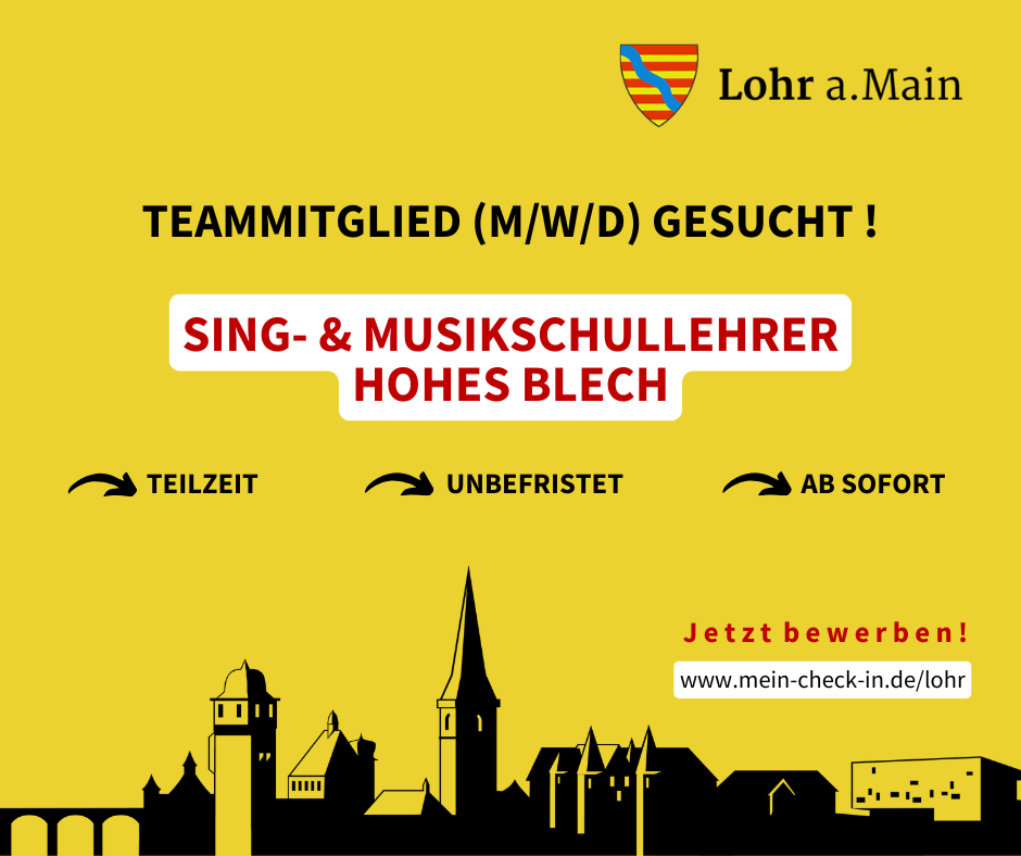 Die Sing- und Musikschule Lohr veranstaltet ihr traditionelles Frühlingskonzert am Mittwoch, 18.03.26 und begrüßt hierzu in diesem Jahr zwei besondere Gäste: Zum Auftakt musiziert der Lohrer Spielmannszug vor dem Eingang der Alten Turnhalle und im Foyer unterhält das Team von Unicef Lohr einen Infostand und bietet auch einen Flohmarkt an.